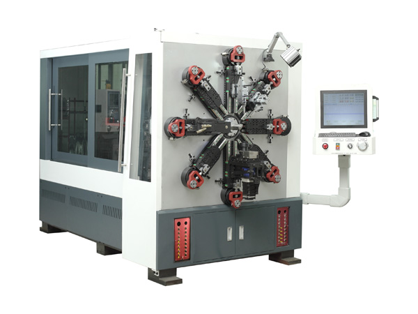 Our company's KCT-1245WZ 12-axis camless CNC versatile spring rotating forming machine adopts Taiwan Windows7 operation control system, reference imported from Japan Yaskawa servo motor, using the unique non cam and no arm design tool are controlled independently by eight servo motors, the turret eight shaft, wire feeding shaft, a shaft, a rotating core transfer line the shaft and the shaft of a curl, a crank connecting rod forming system, wire feeding system, transfer system, straightening system and rotary core system etc.. In addition, the machine can be equipped with hydraulic scissors device, cutting noise is small, the damage to the mandrel and the machine is zero; at the same time also can be equipped with multi-function manipulator, not only has the characteristics of fast forming, accurate and stable performance, but also more convenient and easy to operate.